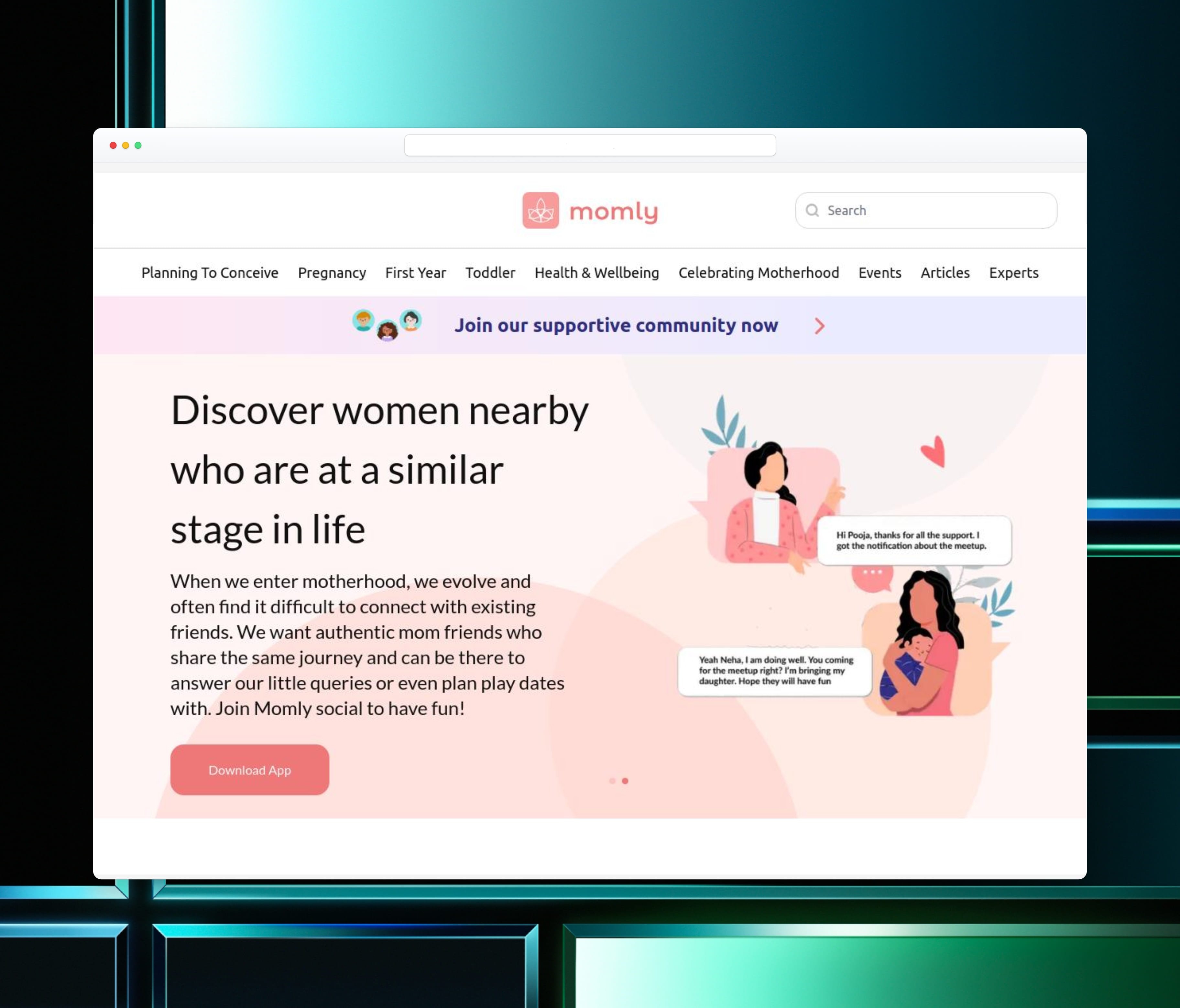 Momly is a safe, women-only platform, to help moms and to-be moms focus on their wellbeing at every stage of motherhood.